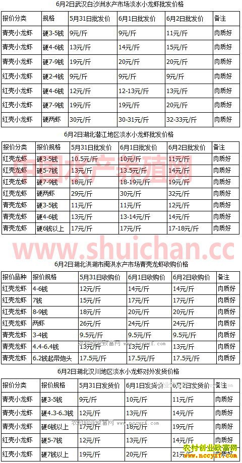 2017年6月2日水产市场最新小龙虾价格行情